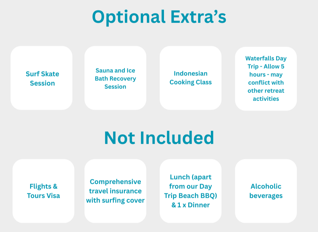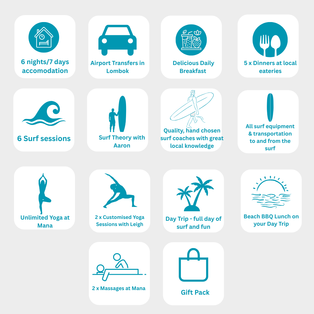 Join us for 6 nights/ 7 days of surf, yoga, adventure, laughter and community.